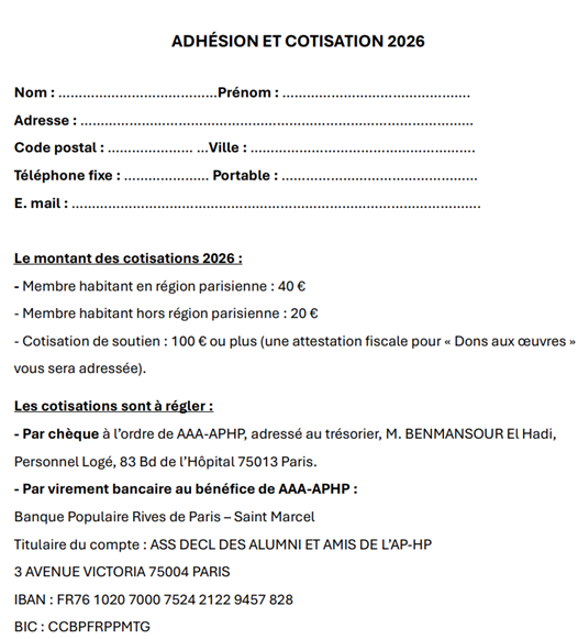 Mais ne manquez pas la prochaine réunion scientifique consacré au muscle, le 3 juin, (voir l’Agenda). Venez-y nombreux et pensez à adhérer à l’AAA-APHP.